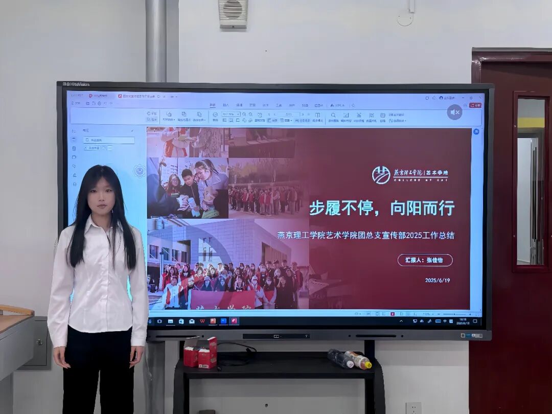 笃行致远 启航新篇 为了加强团队工作建设,深化思想引领,促进团总支整体工作水平提升。燕京理工学院艺术学院团总支于2025年6月19日下午17点在艺术楼308教室开展艺术学院团总支学生副书记预竞选和学期末工作汇报。本次会议皆在总结过去工作中的经验教训,反思存在的问题和不足,明确今后工作方向,凝聚团队向心力,通过预竞选吸纳优秀力量,助力团总支更好服务同学、引领发展。 会议伊始,团总支学生副书记预竞选环节正式开启。参与竞选的同学依次登台,围绕对学生副书记职责的认知展开阐述。学生通过结合自身在团总支参与活动组织、思想引领工作的经历,提出工作思路,他们或沉稳讲述、或激情陈词,用对岗位的理解与规划,展现投身团总支建设、服务全院同学的决心。 随后,各部门代表依次进行对本学期的工作职责汇报,展望过去这一学期的工作成果,得益于同学们的积极配合和努力,从思想引领到团队实践,从志愿服务到校园文化建设,每一项工作都彰显着团总支的责任与担当,充分体现了团总支作为校园团学工作核心力量,凝聚青年、服务青年、引领青年的重要价值。 ✦ 左右滑动,查看更多 ✦ 最后,在这一学期中,各部门工作的有序开展获得了老师的认可,激励团总支继续向前,相信在未来的工作中,艺术学院团总支必将凝聚起更强大的青春力量,共同创造起一个积极向上的团队氛围,为团学事业做出贡献! 文字来源 | 生活2403赵戈青 图片来源 | 艺术学院团总支 图文排版 | 景观2402陈怡彤 网络运营 | 媒介2403张子萱 责任编辑 | 媒介2204李亚鹏 指导老师 | 林秋月 王娱