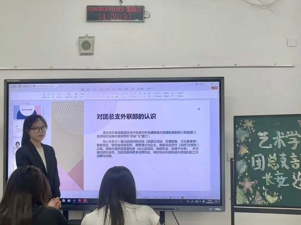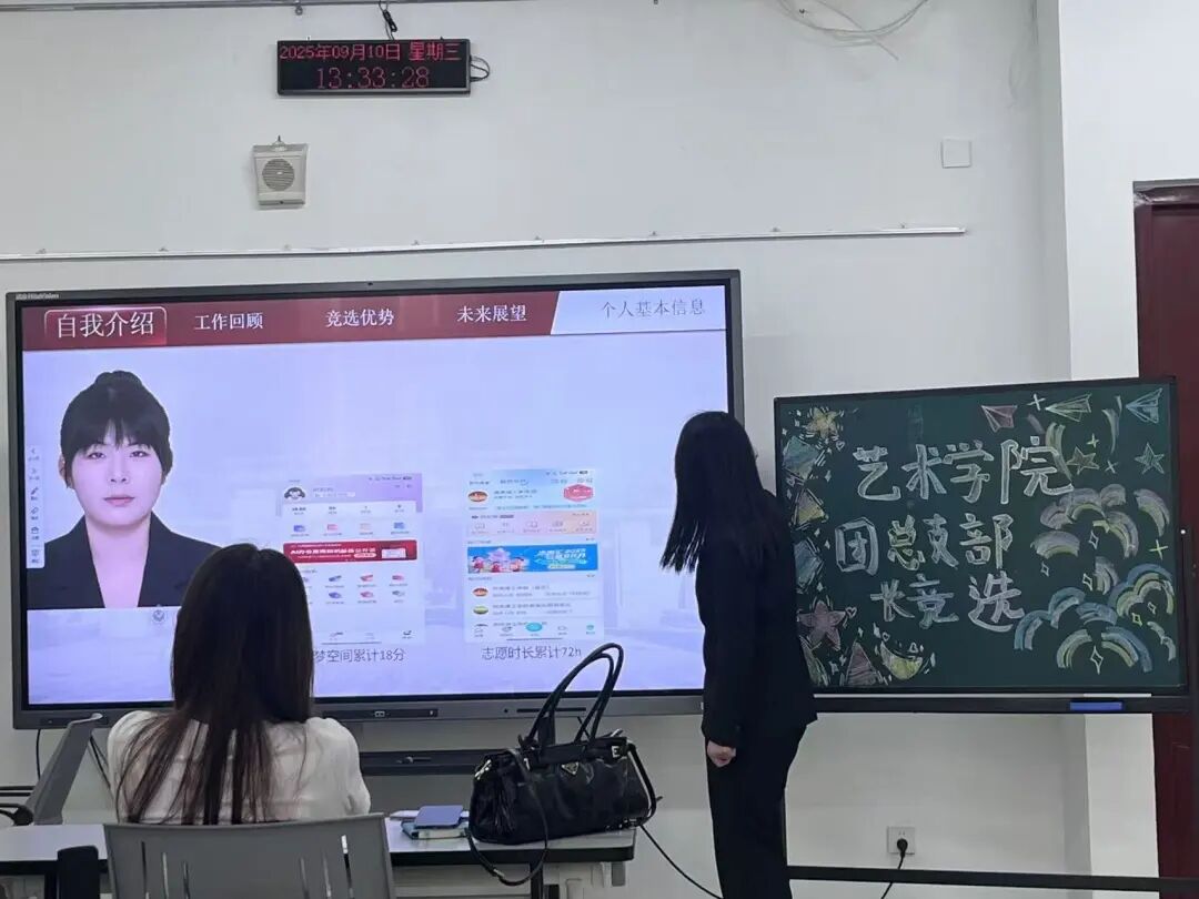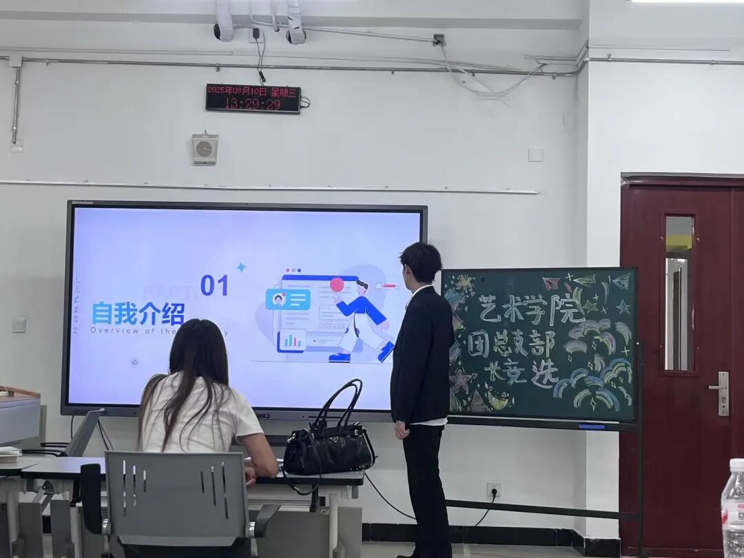 为进一步加强学生干部队伍建设,助力校园文化的传承与发展,更高效地发挥学生干部的服务作用。燕京理工学院艺术学院团总支于2025年9月10日下午13:00在艺术楼204教室开展第十九届部长竞选大会,参与此次会议的有团总支指导老师杨秀繁老师以及各部门部长和各参与竞选的成员。 会议开始,参与此次竞选的同学依次登台,学生通过自己的工作经历和对职位的认知进行阐述。皆在通过竞选注入新的思想和活力,不同候选人有着各自独特的视角和想法,竞选使得更多有能力的同学加入到团总支的管理中,优化干部队伍结构,提升团队整体素质和工作效率,为团总支的长远发展注入动力! 此次竞选大会不仅是对人才的选拔,更是对团组织精神的赓续与弘扬,回望过去的发展历程,每一步都凝聚在每位成员的心中,让我们携手共进,共创美好的未来! 文字来源 | 生活2403赵戈青 图片来源 | 艺术学院团总支 图文排版 | 景观2402陈怡彤 网络运营 | 媒介2403张子萱 责任编辑 |影视2304曾令晋 指导老师 | 杨秀繁  王娱