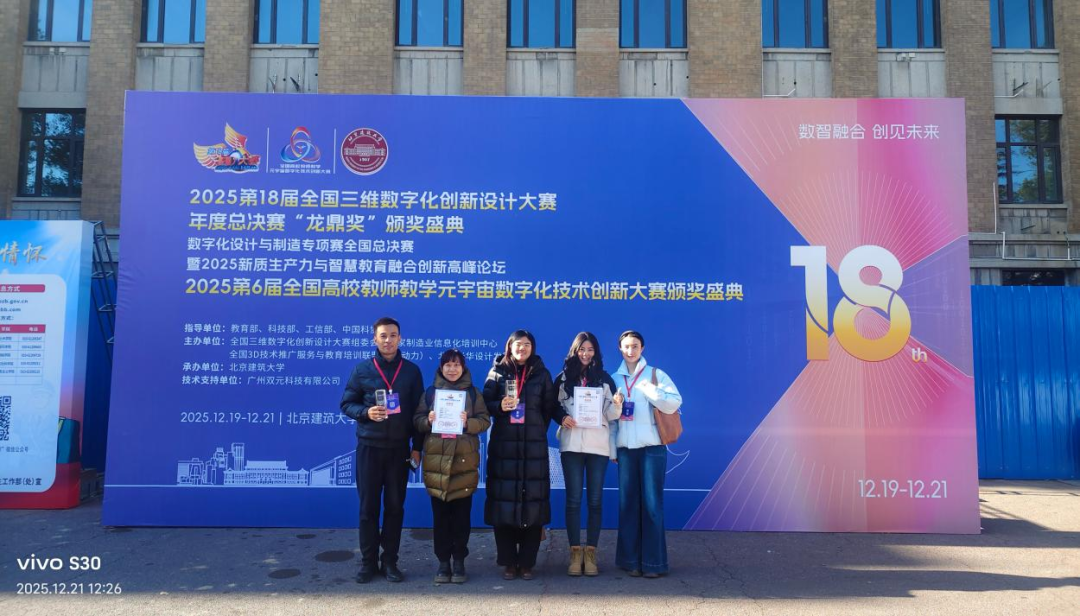 2025年12月21日,燕京理工学院新视界设计产业学院的组织下,燕京理工学院艺术学院在北京建筑大学西城校区大学生活动中心受邀参加了第6届全国3D教师大赛颁奖典礼暨2025新质生产力与智慧教育融合创新高峰论坛。本次论坛以“数智融合,创见未来”为主题,汇聚了全国高校3D教育领域的专家学者、优秀教师代表,共同探讨新质生产力背景下智慧教育的发展路径与创新方向。燕京理工学院艺术学院获奖教师团队受邀参会,凭借扎实的专业功底与创新的教学理念,在大赛中斩获多项国家级荣誉,充分展现了学院在数字化教学领域的育人成果与发展潜力。 上午9时,高峰论坛率先拉开帷幕,来自北京各高校的教育专家围绕“数智融合背景下3D教育的创新实践”“新质生产力赋能高校数智化教育”等核心议题展开深入研讨。与会嘉宾结合自身教学经验,分享了3D技术在艺术设计、建筑建模等领域的教学应用案例,探讨了如何通过技术赋能提升课堂教学质量、培养学生创新实践能力,为推动全国3D教育高质量发展凝聚了共识、贡献了智慧。 在此次大赛中,燕京理工学院艺术学院教师团队表现亮眼,斩获多项重要荣誉:其中,“夺了”教师参赛团队凭借出色的作品设计与教学展示,荣获国赛二等奖;“产品1组”、“未来师界”两支教师参赛团队,荣获国赛三等奖2项,郑建楠教授因在赛事指导中表现突出,获评“优秀教师奖”;同时,燕京理工学院凭借完善的组织工作、优异的参赛成绩,荣获“河北赛区优秀组织奖”,充分彰显了学院在三维数字化创新教育领域的综合实力。 艺术学院获奖教师们表示,荣誉的获得离不开学院的大力支持与团队的共同努力,未来将以此次获奖为契机,进一步深耕三维数字化教学领域,不断提升自身教学水平与创新能力,将数智融合的教学理念更好地融入课堂教学,为培养更多优秀的艺术设计人才贡献力量。 此次受邀参加全国3D教师大赛颁奖典礼,不仅是对艺术学院数智教学成果的充分肯定,更是学院推进数智化教学改革、提升教育教学质量的重要契机。近年来,燕京理工学院艺术学院高度重视智慧教育建设,积极推动3D技术、人工智能等先进技术与专业教学的深度融合,不断完善实践教学体系,加强教师队伍建设,培养了一批具备创新思维与实践能力的优秀教师,为学院教育教学高质量发展奠定了坚实基础。 下一步,艺术学院将以此次活动为抓手,深入总结参赛经验,积极吸纳论坛中的先进教学理念与实践成果,进一步加大数智化教学改革力度,持续提升教师的技术应用能力与教学创新水平,打造更多优质的三维数字化精品课程,推动智慧教育与艺术教育深度融合,为培养适应新质生产力发展需求的高素质艺术人才赋能,为学院教育事业的蓬勃发展注入新的活力。 图文来源于艺术学院教师王冉 网络运营 | 媒介2403张子萱 责任编辑 | 影视2304曾令晋 指导老师 | 王冉 王娱
