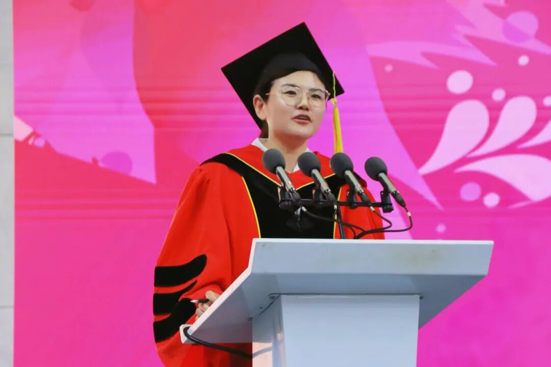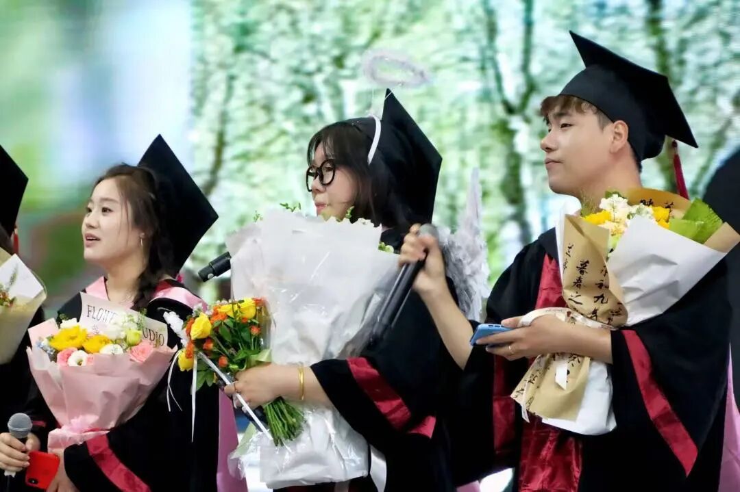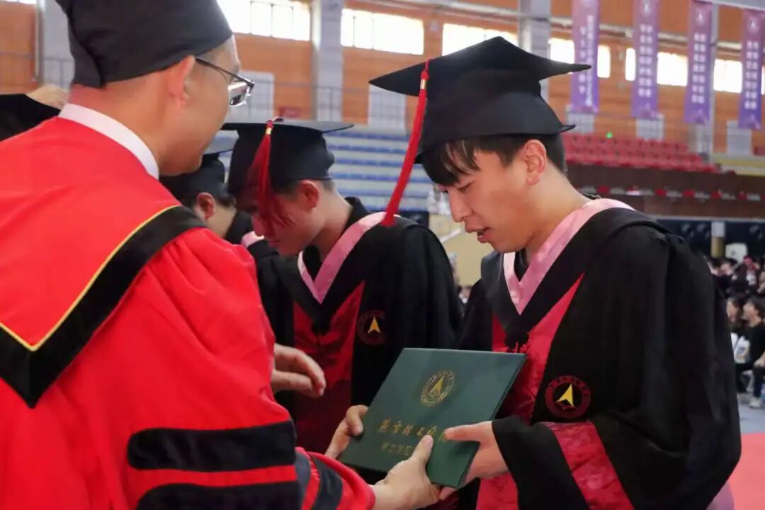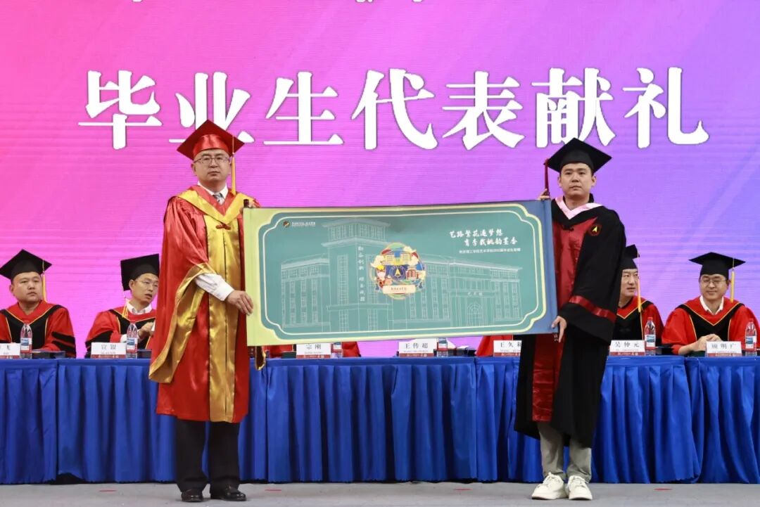 仲夏蝉鸣起,骊歌踏梦行。6月12日,燕京理工学院艺术学院2025届本科毕业生学士学位授予仪式在校园内隆重举行。校党委副书记、副校长王传超,督导办公室宗刚,学科办主任王久和,学生处处长宣银,国际教育学院院长吴仲元,招生就业办公室主任李飞,教务处副处长顾明广,校办副主任李家曾,艺术学院副院长郑建楠,艺术学院党总支书记孙发贵、副书记步小阳,各专业负责人、辅导员老师代表、艺术学院教师代表、家长代表以及2025届全体毕业生齐聚一堂,共同见证这一重要时刻。典礼由艺术学院党总支书记孙发贵主持。 仪式开场,一众主礼教授依次亮相,现场响起热烈掌声。孙书记以真挚的话语向全体毕业生致以热烈祝贺,向默默付出的教师团队和始终支持的家长们表达深切谢意。 全体起立齐唱国歌后,艺术学院副院长郑建楠致辞并宣读学位授予决定。回顾了四年来毕业生们在艺术楼潜心创作、外出采风积累素材、踊跃参与专业赛事,她表示毕业生们完成了从学生到专业艺术人才的成长蜕变。郑院长肯定了毕业生在校期间的努力与成果并向顺利完成学业的学生表示祝贺。同时,她希望毕业生在未来艺术实践中,传承传统艺术精髓,融合现代创新理念,以专业态度创作有价值的艺术作品,在各自领域稳步前行,实现个人职业理想与艺术追求。 随后,环境设计专业负责人侯晓乐老师作为教师代表登台致辞。他回顾师生共同学习实践的经历,肯定同学们专业能力的成长,寄语毕业生以专业为舟、热爱为帆,在未来保持匠心与创新精神,于不同领域书写艺术新篇。同时,他也祝愿毕业生们在人生新征程中,不惧风雨、勇毅前行,将燕理所学转化为创造美好未来的坚实力量。 颁奖环节将仪式氛围推向高潮。艺术学院党总支副书记步小阳宣读优秀毕业作品和优秀毕业生表彰决定文件。在热烈的欢呼与掌声中,优秀毕业设计作品获奖者代表、校级优秀毕业生代表、省级优秀毕业生代表依次上台,校学生处处长宣银、国际教育学院院长吴仲元等嘉宾为他们颁发荣誉证书。 2025届省级优秀毕业生颁奖 2025届校级优秀毕业生颁奖 2025届优秀毕业作品颁奖 省级优秀毕业生代表、首饰2101班张安妮同学分享考研奋斗历程时谈到,2021年入学后,她在燕理开启艺术求学之路。四年间,她在专业课程学习、社团活动实践中积累成长,在艺术楼创作、图书馆备考的时光里沉淀自我。她感谢学校搭建成长平台,感恩教师悉心指导、同窗并肩奋斗,也对承载青春记忆的校园表达不舍。展望未来,她将带着在燕理所学,勇敢迎接新挑战,同时祝福母校蓬勃发展、师生前程似锦。 “饮其流者怀其源,学其成时念吾师”,毕业生们用独特方式传递感恩之情。精心定制的毕业赠礼《绣梦青春,感恩母校》惊艳亮相,作品巧妙融合艺术楼、灵动京京、娇艳海棠等校园元素,艺路繁花勾勒校园盛景,诉说着对母校的眷恋与感恩。校党委副书记、副校长王传超代表学校接受献礼。随后,毕业生代表向教师敬献鲜花,艺术学院也为每位毕业生送上精心准备的纪念品,寄托着对未来的美好祝愿。 媒介2102班张翰文同学家长作为家长代表发言。她表示,孩子从入学时对艺术的懵懂憧憬,到如今顺利走上工作岗位,离不开燕京理工学院的精心培育。她感谢学校教师团队在专业课程教学中的严谨指导,以及在生活中给予学生的细致关怀。同时,她指出,学校开放多元的育人环境,不仅助力孩子夯实专业基础,更培养了其独立思考与实践创新能力。最后,家长代表对学校表达了诚挚祝福,希望未来能有更多学子在学校的培养下成长成才。 最激动人心的学位授予环节,主礼教授们郑重起身,为毕业生逐一拨穗礼、颁发学位证书。随着学位授予仪式完成,孙书记宣布燕京理工学院艺术学院2025届本科毕业生学士学位授予仪式圆满结束。 这场仪式既是对毕业生大学四年学习生活的总结,也是他们开启人生新征程的起点。带着母校的期望与祝福,1178名毕业生将走出校园,在各自领域发光发热,为社会发展贡献力量。 祝愿燕京理工学院 艺术学院2025届全体毕业生 前程似锦、逐风前行 采编文案 | 景观2403廖怡然 摄影摄像 | 影视2302邝子妍 室内2408张笑瑜 室内2408贾子彤 媒介2402吕铭涵 视频剪辑 | 生活2303任彤昕 家电2302杨语越 媒介2405陈晴 媒介2405范诺琳 网络运营 | 媒介2403张子萱 责任编辑 | 媒介2204李亚鹏 指导老师 | 王娱